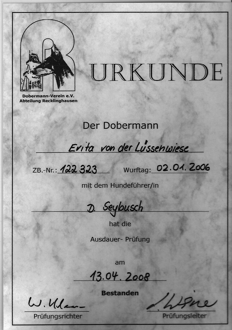 "Dobermannzucht von der Lüssenwiese" Gernot Straub,